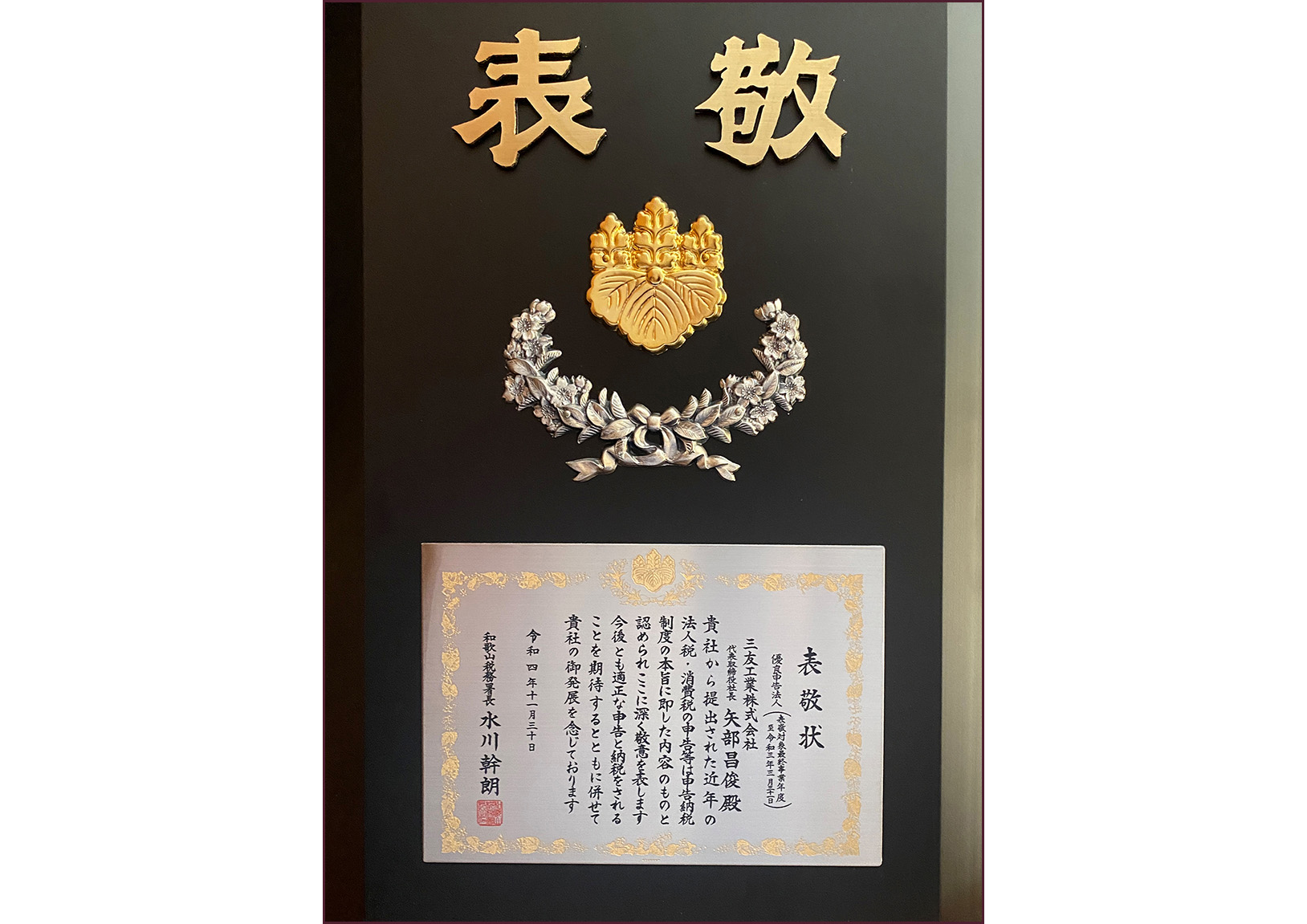 今後とも優良申告法人として適正申告を行い貢献し続けられるよう努力を続けてまいります。